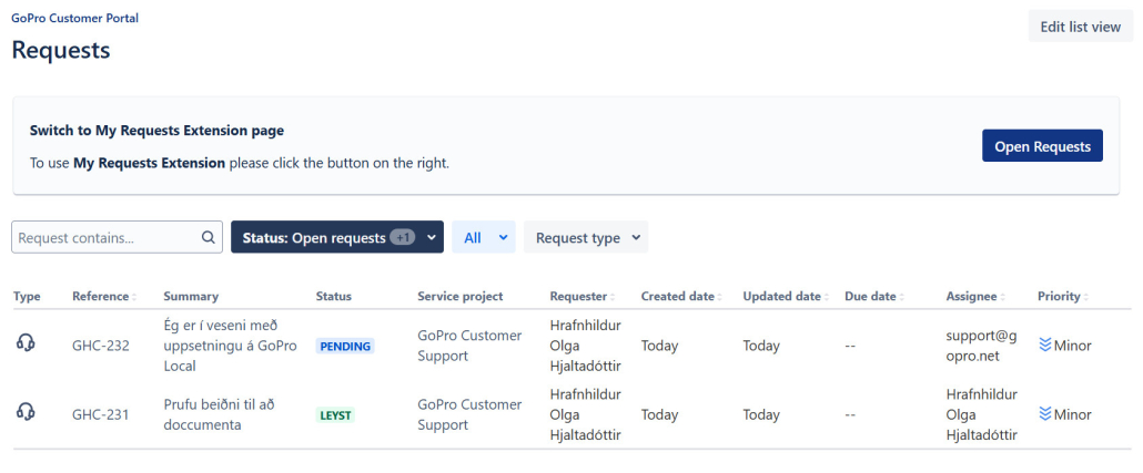 Hugvit býður öllum viðskiptavinum aðgang að nýju þjónustuborði sem einfaldar samskipti og veitir bæði okkur og viðskiptavinum skýrari yfirsýn yfir vinnuflæði og stöðu mála. Þjónustuborðið er miðlægur staður þar sem allar fyrirspurnir og beiðnir tengdar GoPro fara í gegnum skipulagt ferli. Aðgangur að þjónustuborðinu er án endurgjalds. En ef beiðnin kallar á vinnu af hálfu Hugvits, kann að myndast kostnaður.